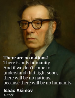 What public intellectual and science fiction giant Isaac Asimov said here has been the subject of a great deal of discussion over the years.  It’s what virtually everyone who’s seen the Earth from space says, i.e., “There are no borders.”