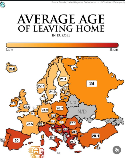 What I notice is that children in families of Scandinavian countries tend to hit the road earlier than any other region in Europe. The question, of course, is why.