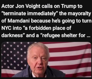 I suppose what Jon Voight is calling for here is the illegal overturning of the NYC mayoral election.  Trump is no stranger to things like having his people storm the U.S. Capitol to overturn the results of far more important stuff.