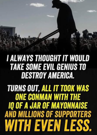 Before Trump was re-elected, there wasn’t a single soul in the United States who thought there was one chance in a million that America would be brought to its knees by a criminal sociopath in the White House.