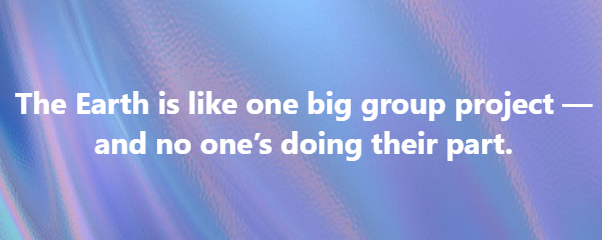 Is Earth a “Group Project?” If So, Is “No One Doing Their Part?”