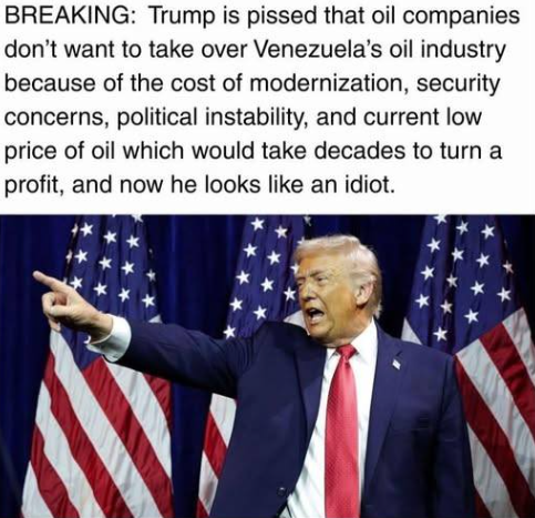 • Illegally invaded Venezuela for its oil.